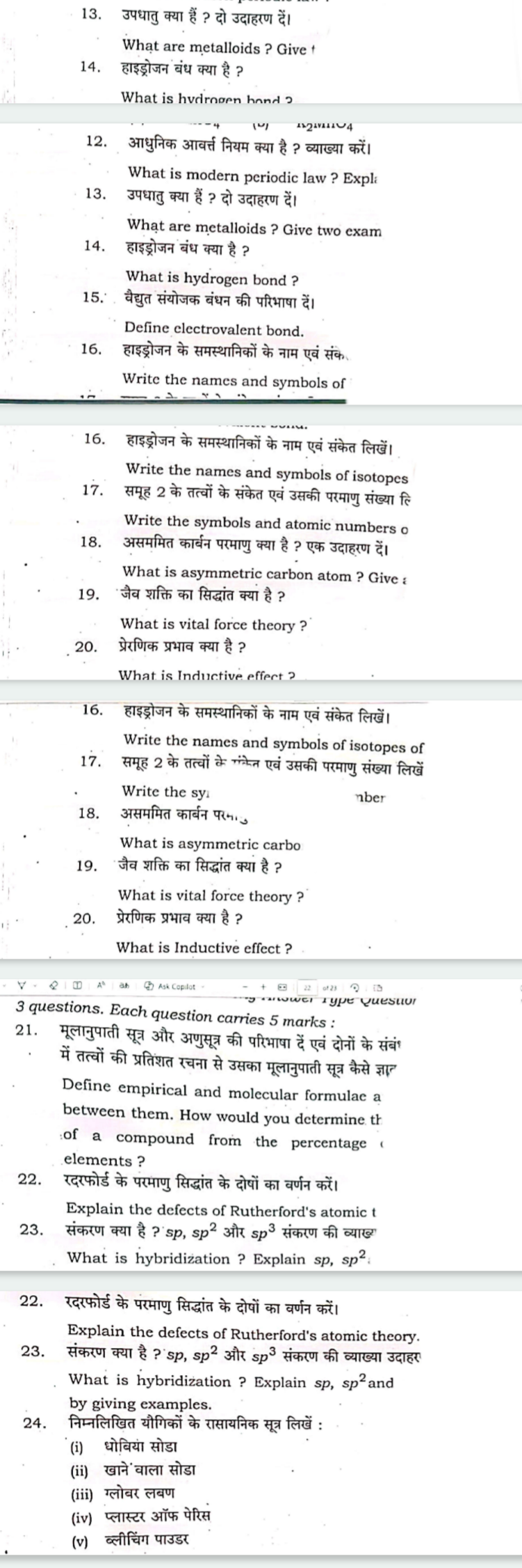 बिहार बोर्ड कक्षा 11वी का जो पेपर 16 मार्च के दिन रसायन शास्त्र का द्वितीय पाली में होने जा रहा है उसके लिए नीचे कुछ महत्वपूर्ण गेस प्रश्न के साथ वायरल प्रश्नपत्र भी अपलोड कराया गया है इसे जरूर पढ़ के परीक्षा देने जाएं ताकि आपका अच्छा मार्क्स आ सके।