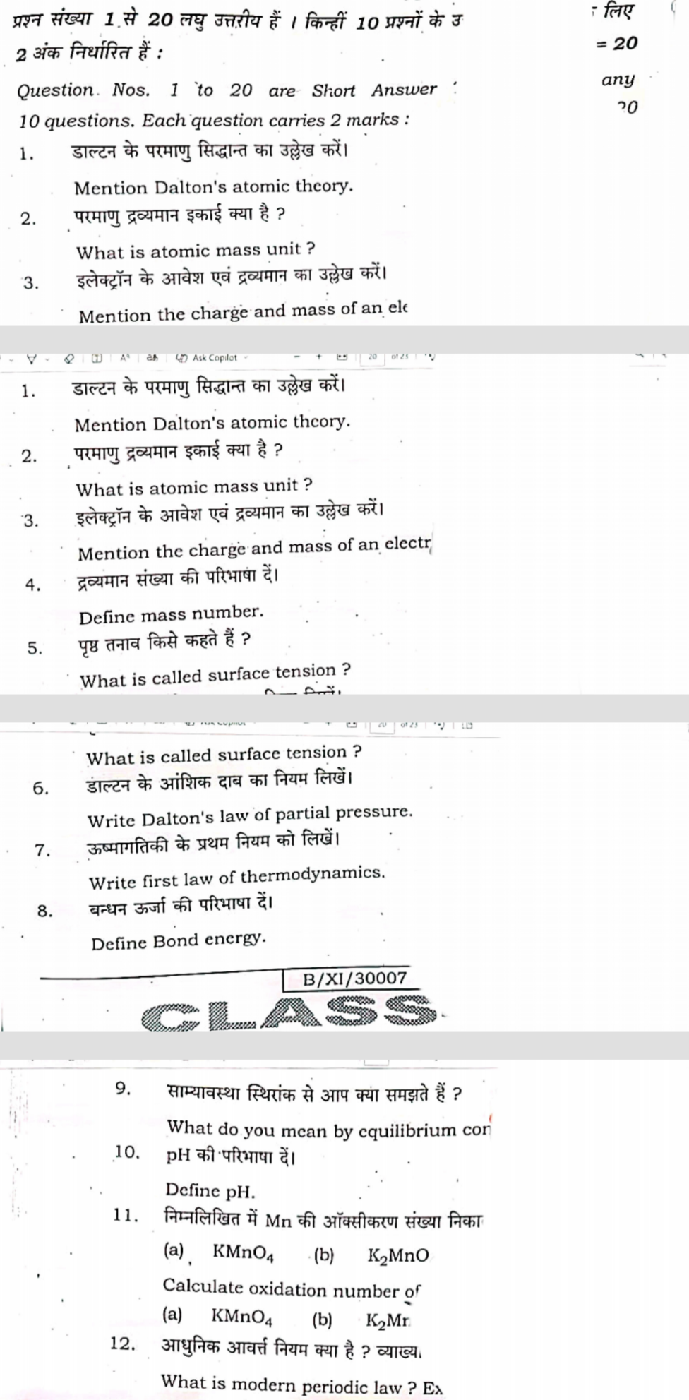 बिहार बोर्ड कक्षा 11वी का जो पेपर 16 मार्च के दिन रसायन शास्त्र का द्वितीय पाली में होने जा रहा है उसके लिए नीचे कुछ महत्वपूर्ण गेस प्रश्न के साथ वायरल प्रश्नपत्र भी अपलोड कराया गया है इसे जरूर पढ़ के परीक्षा देने जाएं ताकि आपका अच्छा मार्क्स आ सके।