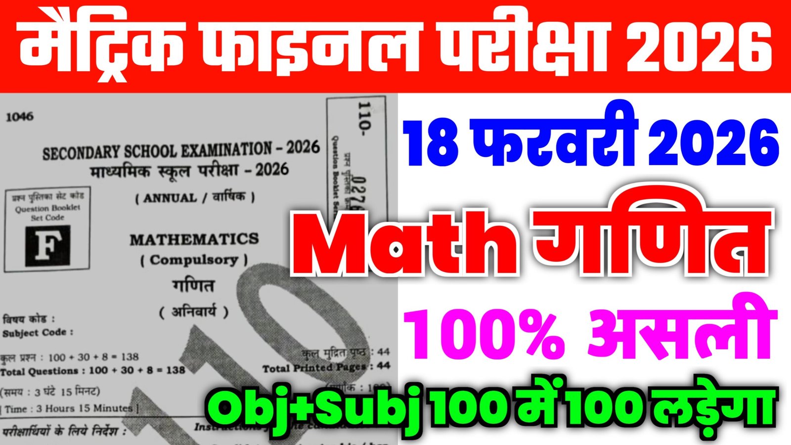 मैट्रिक बोर्ड फाइनल परीक्षा 2026 में सम्मिलित होने वाले विद्यार्थियों के लिए जो कि 18 फरवरी के दिन गणित का पेपर प्रथम एवं द्वितीय पाली में देने वाले है तो उनके लिए गैस वायरल प्रश्नपत्र दिया गया है इसे एक बार अच्छे से पढ़ लीजिए। तभी आपका मैट्रिक बोर्ड परीक्षा में 450 से ज्यादा नंबर आ पाएगा।