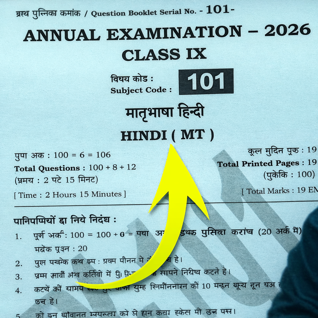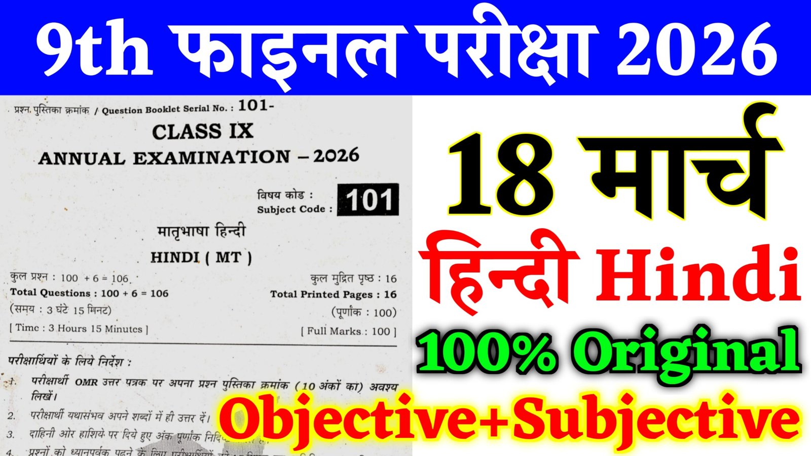 कक्षा 9th वार्षिक परीक्षा 2026 का प्रश्न पत्र आपके विद्यालय में मार्च माह तक पढ़ाए गए पाठ से प्रश्न आएगा