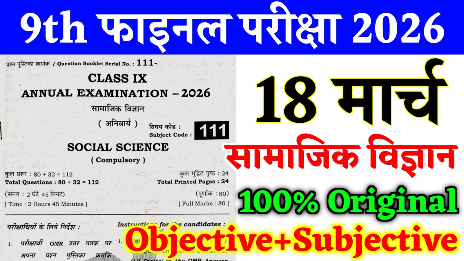 अगर आप 18 मार्च के दिन सामाजिक विज्ञान का पेपर देने जा रहे हैं तो नीचे Subjective का answer key दिया जा रहा है उसे देखने बाद परीक्षा हॉल में जाएं।