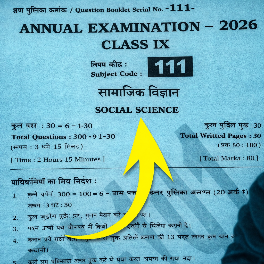 कक्षा 9th वार्षिक परीक्षा 2026 का प्रश्न पत्र आपके विद्यालय में मार्च माह तक पढ़ाए गए पाठ से प्रश्न आएगा