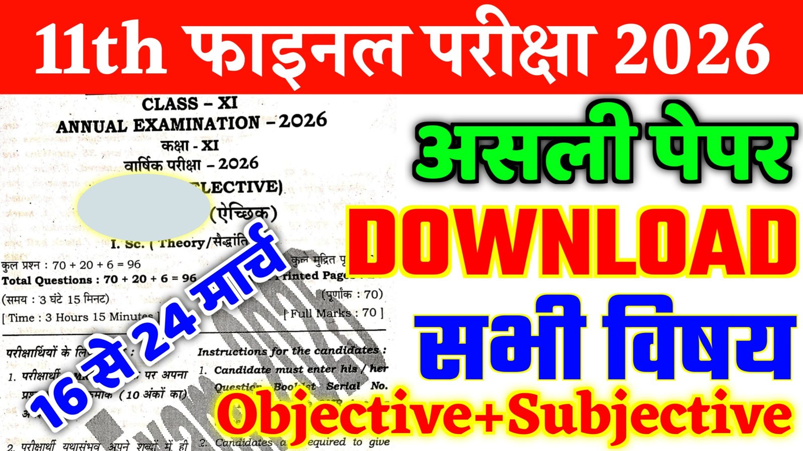Class 11th Science Stream Annual Exam All Subject Question Paper Download link 2026