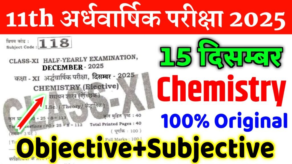 15 December Class 11th Chemistry Original Viral Question Paper 2025 15 दिसम्बर के लिए chemistry का questions paper डाउनलोड यह
