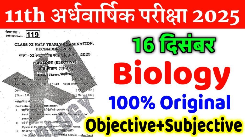 16 December Bihar Board Class 11th Biology Question Paper 2025 16 दिसंबर बिहार बोर्ड कक्षा 11वीं biology का 100% वायरस […]
