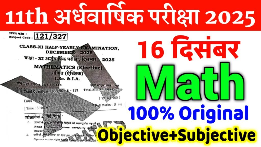 16 December Bihar Board Class 11th Math Question Paper 2025 16 दिसंबर के लिए गणित का 100% वायरस क्वेश्चन पेपर