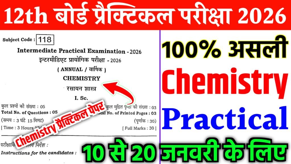 10 to 20 January Bihar Board Class 12th Chemistry Practical Exam Viral Question Paper 2026 10 से 20 जनवरी तक