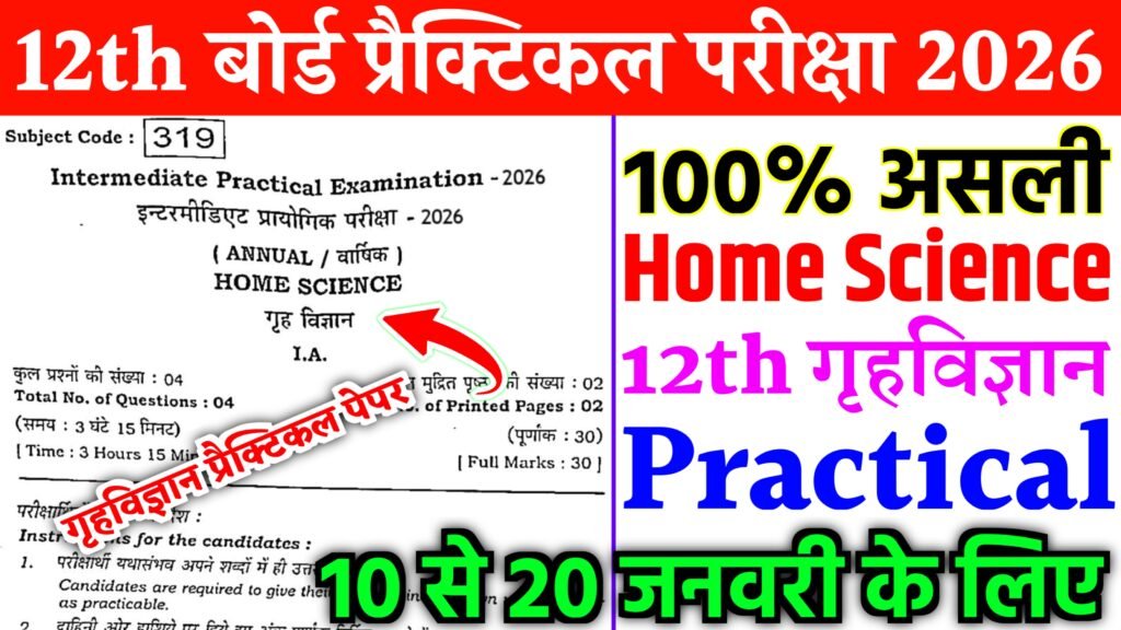 10 to 20 January Bihar Board Class 12th Home Science Practical Exam Viral Question Paper 2026 10 से 20 जनवरी