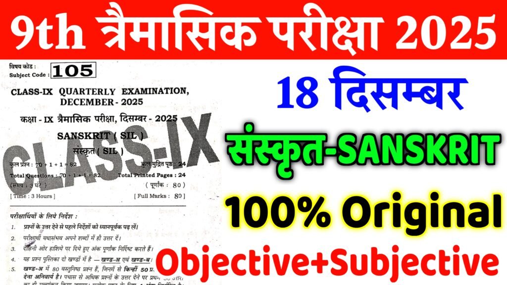 18 December Bihar Board Class 9th Sanskrit Original Question Paper Quarterly Exam 2025 18 दिसम्बर बिहार बोर्ड कक्षा 9वीं दिसम्बर