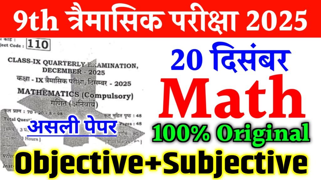 20 December Bihar Board Class 9th Math Original Question Paper Quarterly Exam 2025 20 दिसम्बर बिहार बोर्ड कक्षा 9वीं दिसम्बर