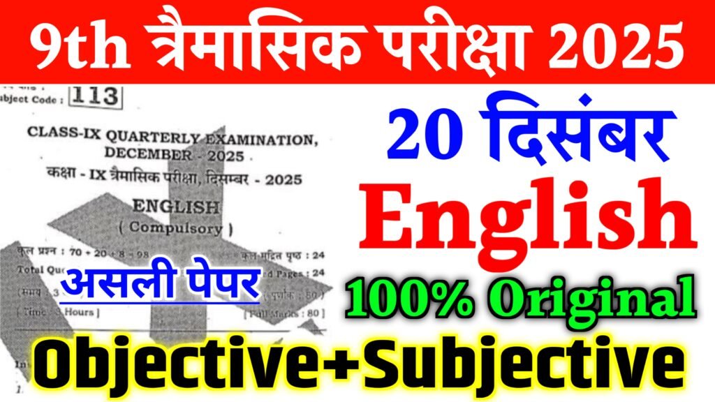 20 December Bihar Board Class 9th English Original Question Paper Quarterly Exam 2025 20 दिसम्बर बिहार बोर्ड कक्षा 9वीं दिसम्बर